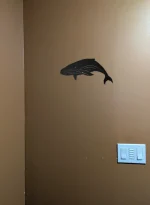 Dive into the beauty of marine life with our “Diving Humpback Whale Wall Art.” Measuring 14.5 inches wide by 8 inches high and crafted from 16-gauge steel, this piece is painted black for a sleek and timeless finish. The design features a gracefully diving humpback whale, complete with intricate cut-out details that bring the artwork to life. Equipped with a sturdy wall bracket for easy mounting, this Rustic Soul NL creation is a perfect addition to any home décor, blending elegance with a touch of oceanic charm.