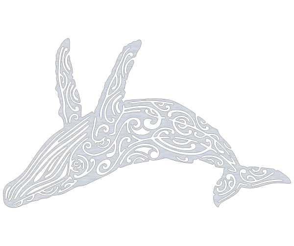 “Twist of the Tide: Whirly Humpback Whale Wall Art” (24×16″). 1/8-inch aluminum, dynamic swirling whale design evoking ocean tides. A bold maritime décor piece. Perfect for coastal themes, home, or gifting. Rustic Soul NL.
