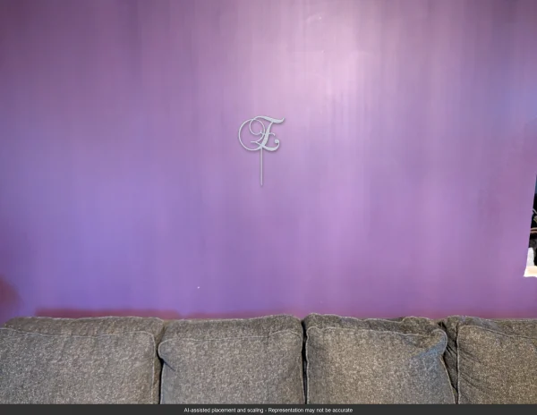 Tags: aluminum art, birthday party, cake decoration, elegant decor, handcrafted, letter E, monogram topper, script design, special occasion, wedding cake