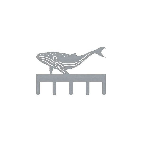 Discover our 10×7 Humpback Whale Steel Key Rack. Featuring a laser-cut whale design and 5 hooks, perfect for nautical decor. Durable raw steel finish.