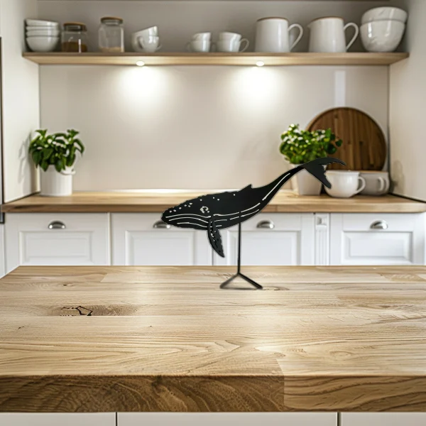 Tags: black-painted steel, gift for ocean lovers, handcrafted decor, home accent, marine life, nautical decor, ocean theme, steel sculpture, whale art, whale sculpture