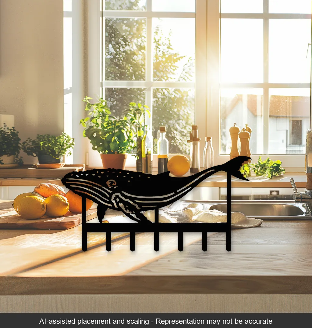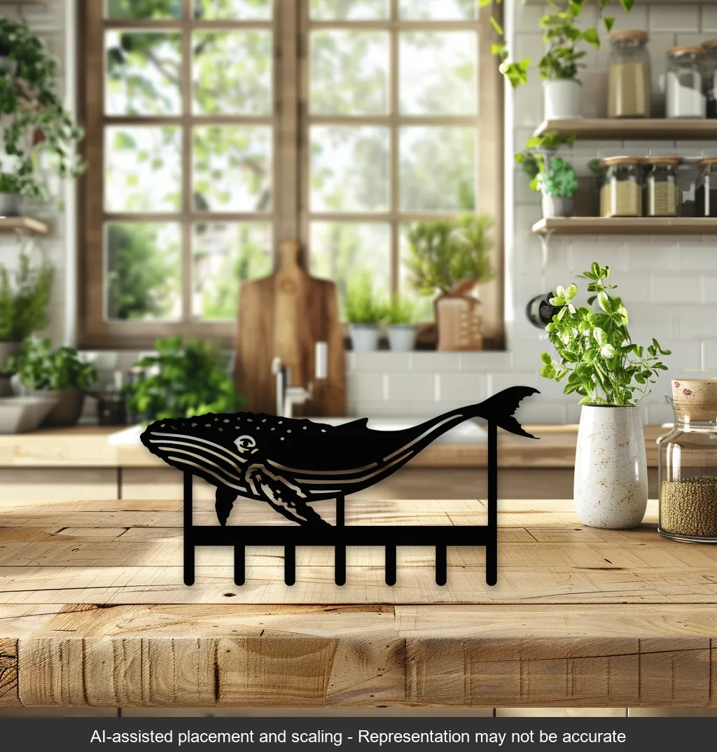 This Humpback Whale Steel Key Rack is perfect for ocean lovers and nautical decor enthusiasts. Made from high-quality steel, it features a detailed laser-cut design of a humpback whale, complete with seven sturdy hooks for organizing your keys. The sleek, durable finish ensures longevity, making it a practical and stylish addition to any entryway, kitchen, or office. Its unique design brings the beauty of the ocean into your home, combining functionality with artistic flair.