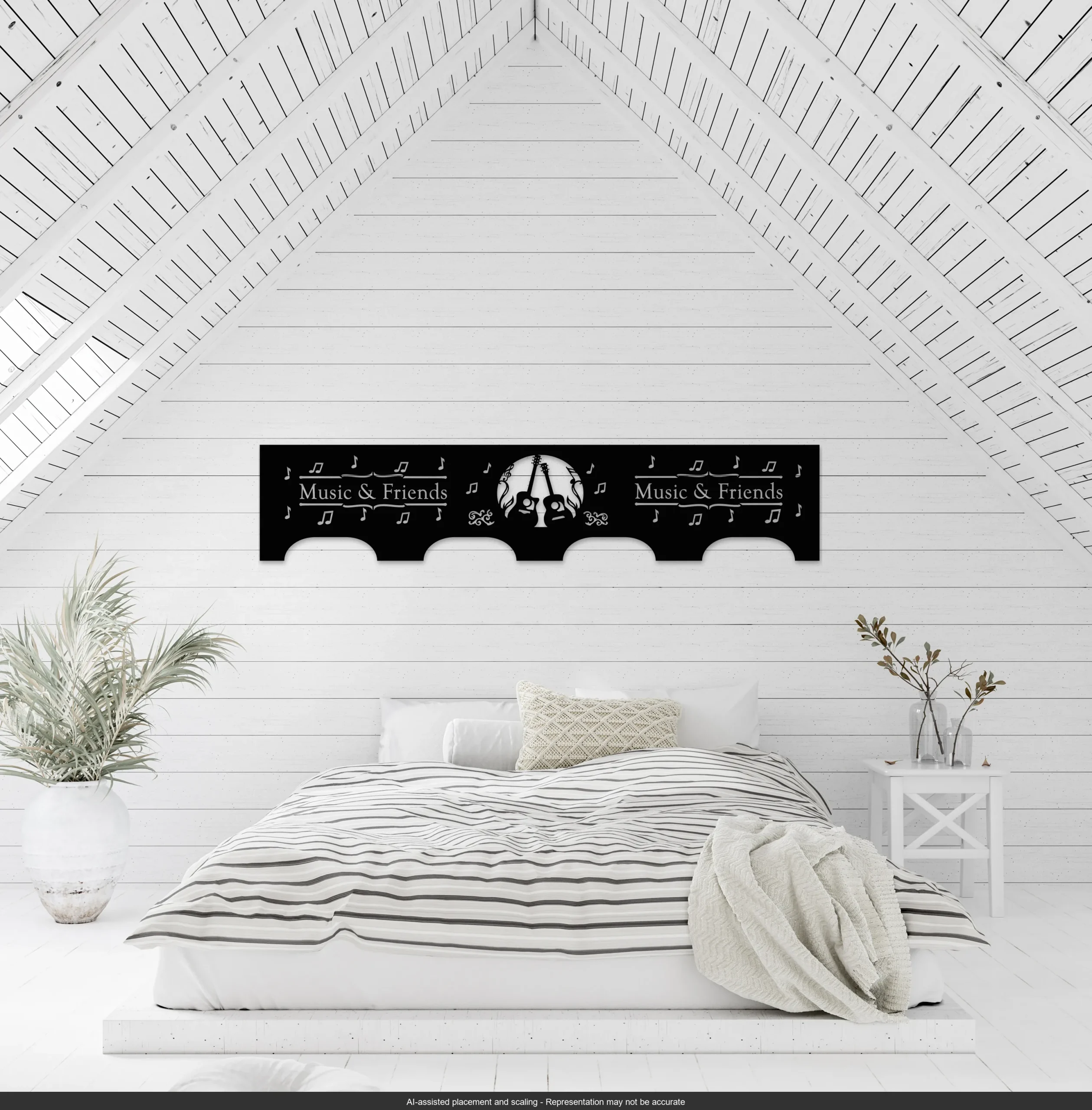 “Music & Friends Steel Fire Pit” (72.5×15″). 14-gauge steel, precision-cut design featuring guitars in a circular frame. Painted black. A stunning backyard centerpiece. Perfect for musicians, gatherings, or gifting. Rustic Soul NL.