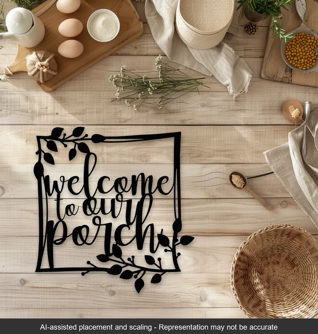 Enhance your home’s entry with the Welcome to Our Porch Wall Sign. Crafted from durable 16-gauge steel and finished in sleek black, this square wall sign measures 16 inches wide by 17 inches high. It features elegant vine accents that add a naturally warm, rustic charm to any porch or outdoor living area. Designed for lasting durability in both indoor and outdoor settings, this wall sign is perfect for homeowners who appreciate the blend of traditional design with modern quality. Rustic Soul NL.