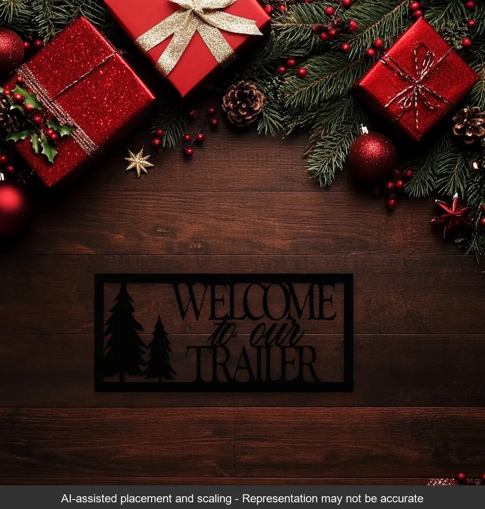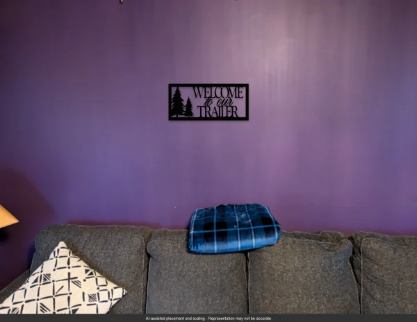 Enhance your outdoor space with the Welcome to Our Trailer Wall Sign. Crafted from durable 16-gauge steel and painted black, this 18-inch wide by 8-inch high precision-cut design features the welcoming phrase “Welcome to Our Trailer” alongside a beautifully detailed tree silhouette, bringing a rustic and inviting aesthetic to your getaway. With its sleek metal finish, this sturdy wall sign is perfect for campsites, RV setups, vacation retreats, and cozy entryways, adding a personal touch to any outdoor space. The precision-cut steel ensures lasting durability, making it ideal for both indoor and outdoor use. Designed for travelers, nature lovers, and those who embrace the simplicity and freedom of trailer life, the Welcome to Our Trailer Wall Sign is both a stylish greeting and a tribute to the joy of life on the road.
